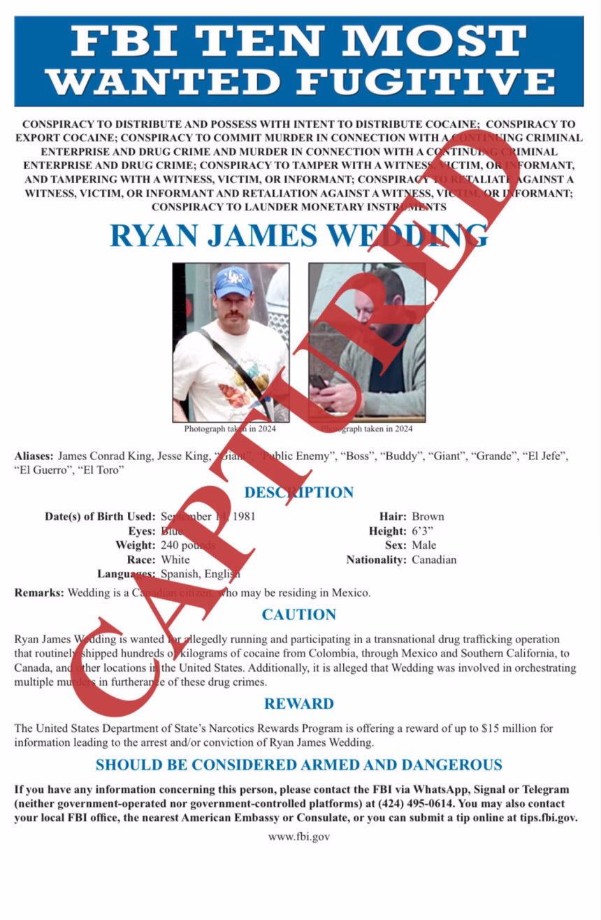 Ryan Wedding, exatleta olímpico canadiense y señalado como líder de una red de narcotráfico internacional, fue arrestado tras años prófugo y con una recompensa millonaria por su captura.